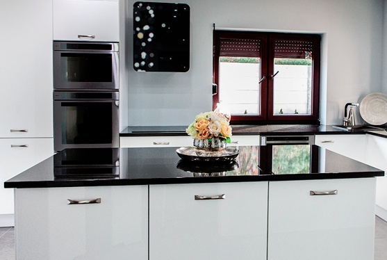 Чёрная кухонная мебель также отлично подходит для комбинаций. При использовании с жёлтым цветом получается большой контраст, что делает среду изысканной и полной жизни.