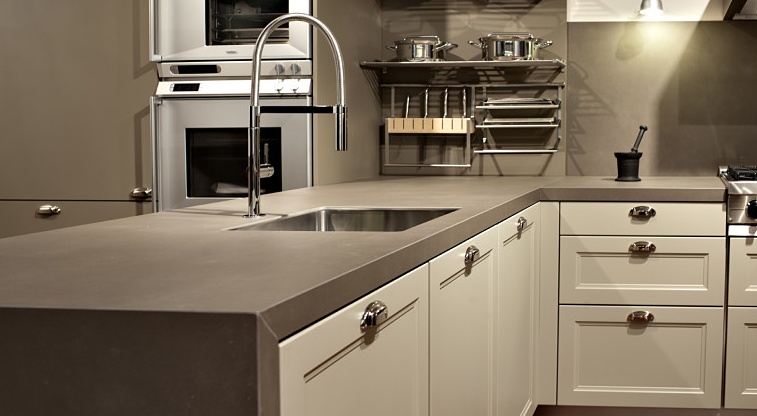 Особенности столешниц из ненатурального камня. Для производства искусственного камня применяется акриловая смола и мраморная крошка. У такой столешницы не имеется пор, вследствие этого она не впитывает воду и является гигиеничной. Такую столешницу можно заказать в любой фирме. Благодаря применению бесшовных технологий, поверхность получается целостной. Данный стройматериал легко полируется и его очень просто ремонтировать. Поэтому такие столешницы будут радовать своих владельцев на протяжении длительного времени. Для их мытья можно использовать абсолютно любое моющее средство.
